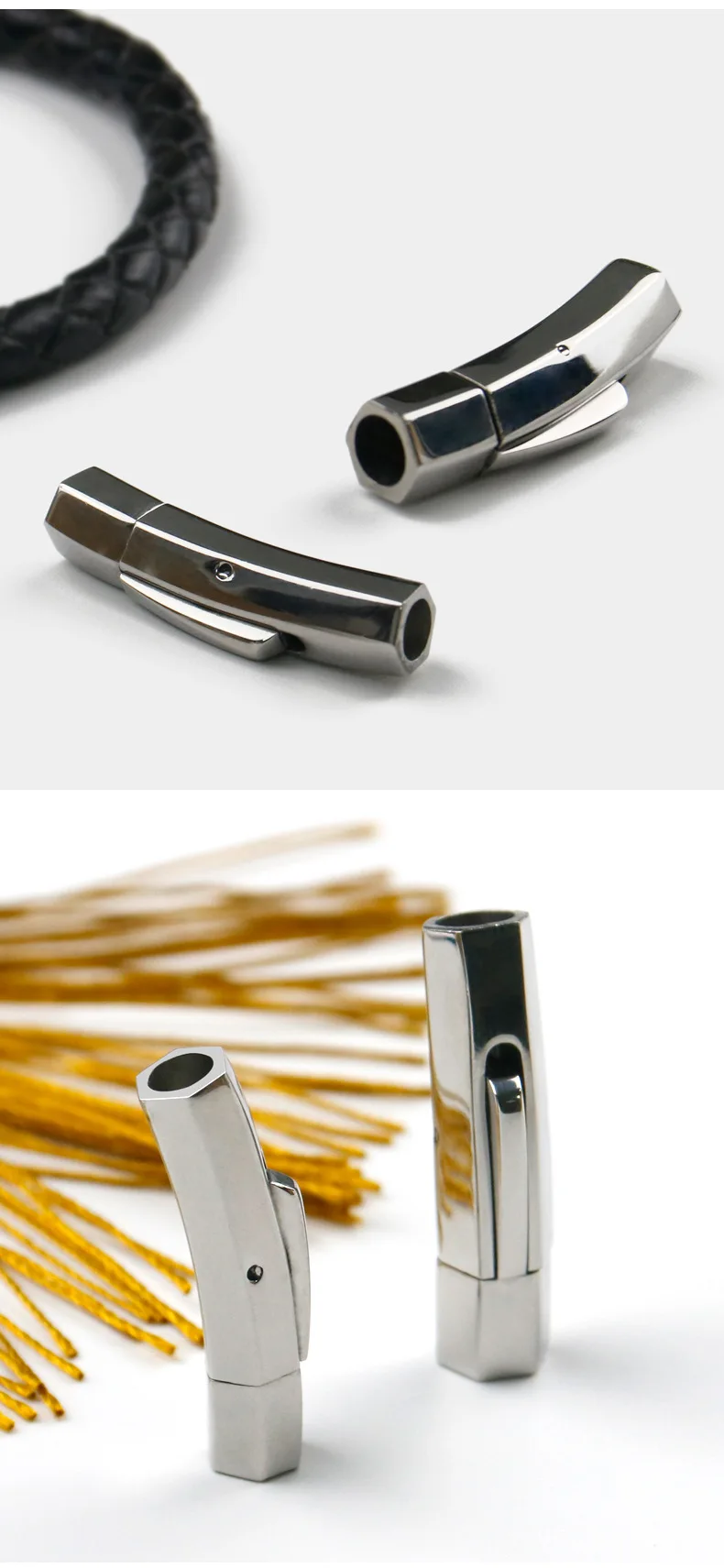 2PCs Stainless Steel Bayonet Clasps 3/4/5/6/8mm Hole Hexagon Push Lock Leather Cord Clasp DIY Bracelet Jewelry Making Supplies