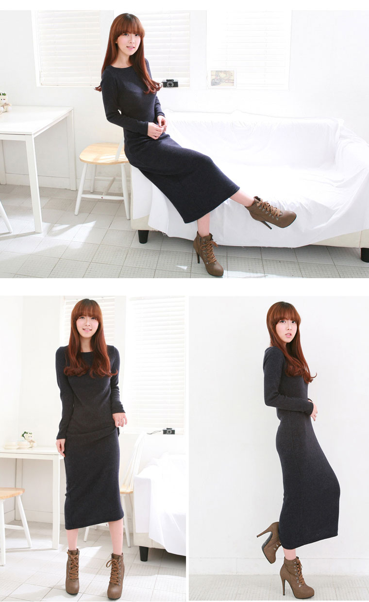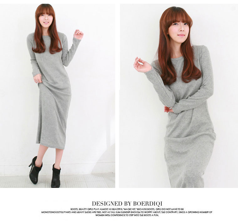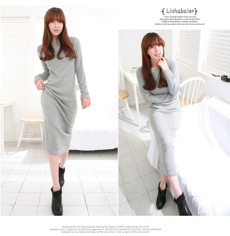 TIYIHAILEY O-neck Winter Thick Thermal Full Sleeve Maxi Dress S-10XL Customized Fleece Stretch Outerwear Hoodies Black Grey